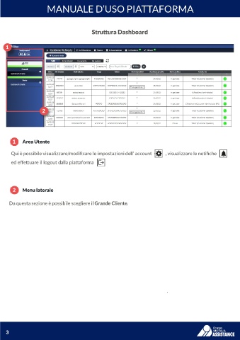 MANUALE D’USO PIATTAFORMA ra Dashboard 1 2 1 Area Utente 2 Menu laterale Da questa sezione è possibile scegliere il Grande Cliente. 3